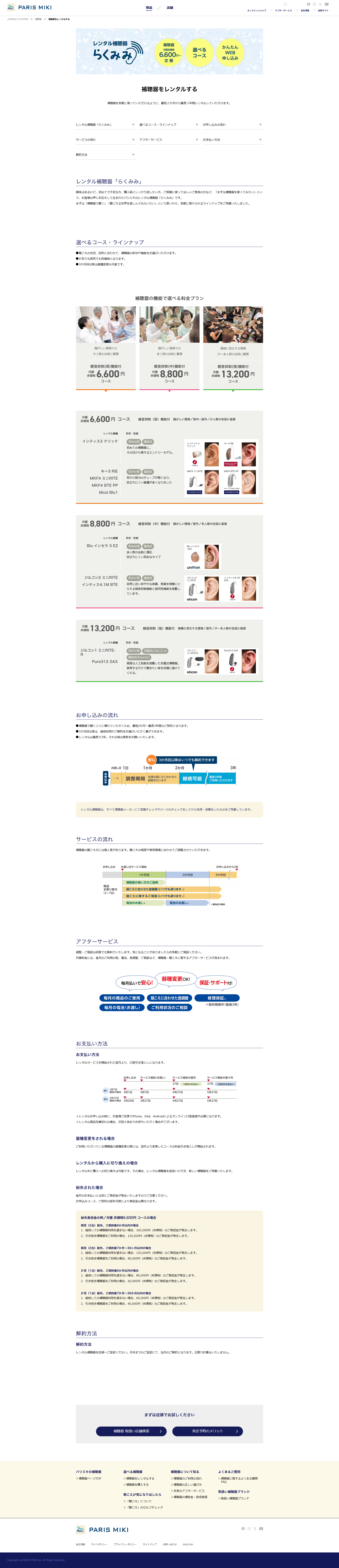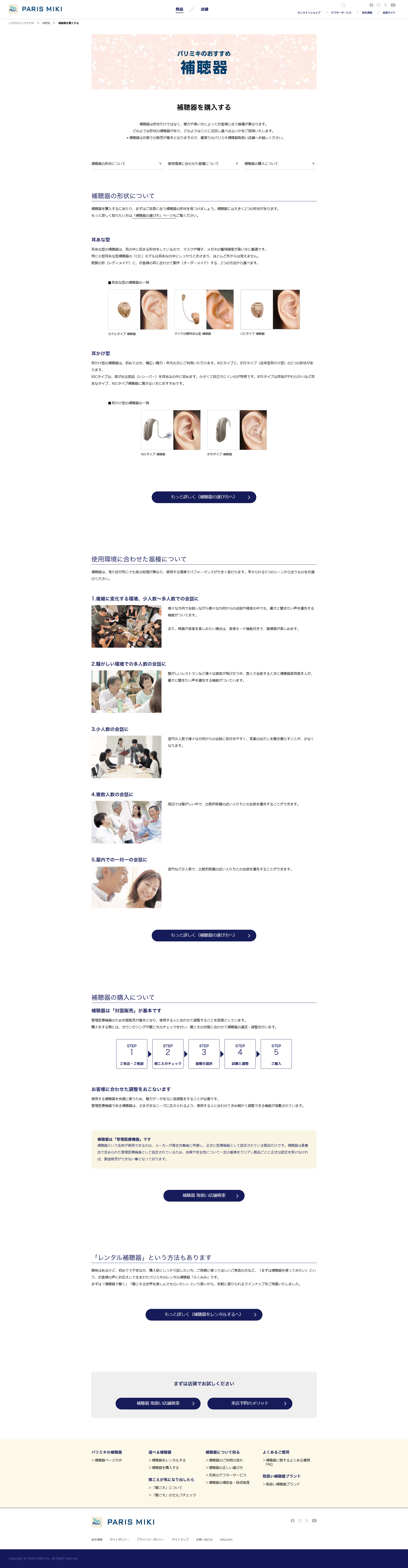 - https://www.paris-miki.co.jp/products/hearingaid/ https://www.paris-miki.co.jp/products/hearingaid/rental/ https://www.paris-miki.co.jp/products/hearingaid/brand/paris-miki-original/ ※抜粋したスクリーンショットとURLのみ掲載していますが、/hearingaid/以下全て担当範囲です。